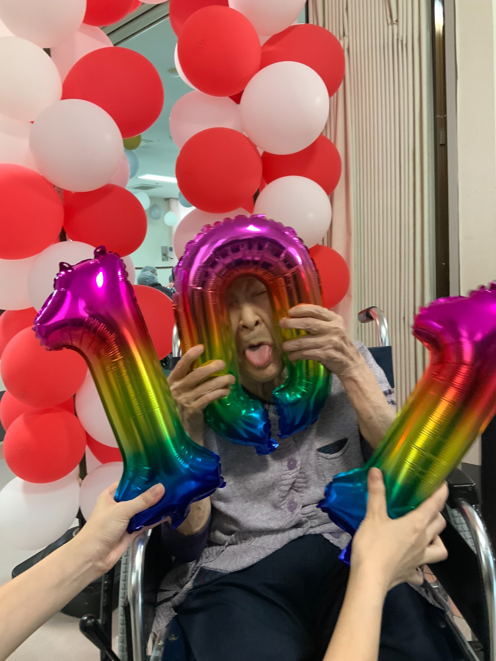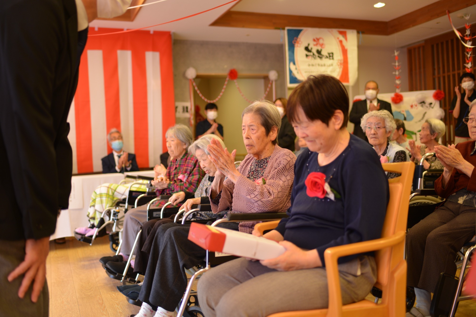 お祝い品とメッセージをもらって感極まるご利用者様の姿も見られました。